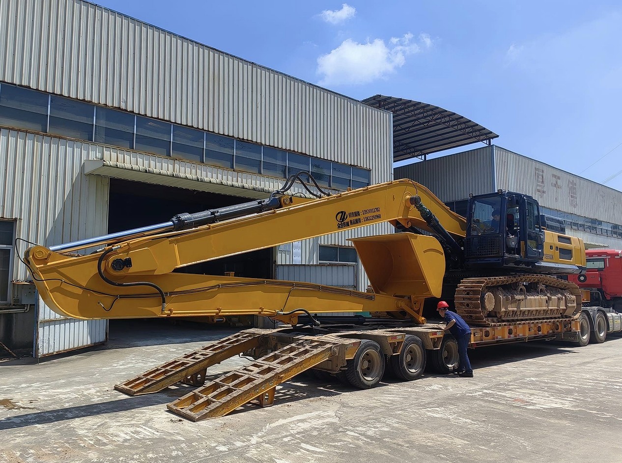 بازوی بلند حفاری، که به عنوان تمدید بوم یا اتصال دراز مدت نیز شناخته می شود، یک اصلاحات تخصصی است که برای گسترش قابل توجهی پوشش عملیاتی یک حفاری استاندارد طراحی شده است.با تعویض یا گسترش بوم و چوب اصلی، این لوازم به ماشین آلات اجازه می دهد تا شعاع های کاری را از 10 متر تا بیش از 40 متر، بسته به پیکربندی، به دست آورند.طراحی به طور معمول از فولاد های کم آلیاژ (HSLA) استفاده می کند، مانند WELDOX، برای حفظ یکپارچگی ساختاری در حالی که مدیریت وزن.